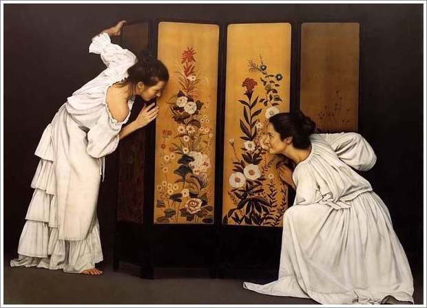 La figura es el gentro de sus composiciones sin poder prescindir de ellas en unos espacios que han ido evolucionando hacia el mnimalismo con el fin de otorgar a la actitud de los personajes toda su expresión estética.