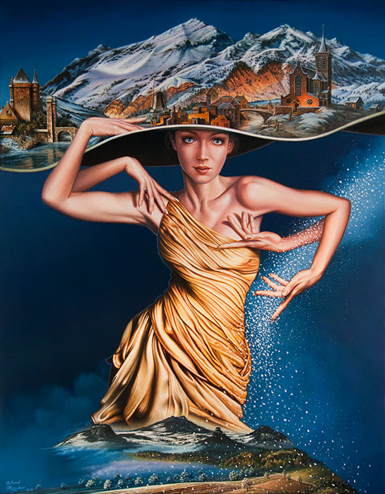 Der Dramatiker führt seine Bühne vor, der Gaukler treibt seine Späße, der Philosoph entwirft sein Weltbild. Technisch perfekt, verschlüsselt, rätselhaft, assoziativ und autobiographisch sind seine Werke. Ein Spiel mit dem Unbewussten, mit dem erotisch schönen Schein.